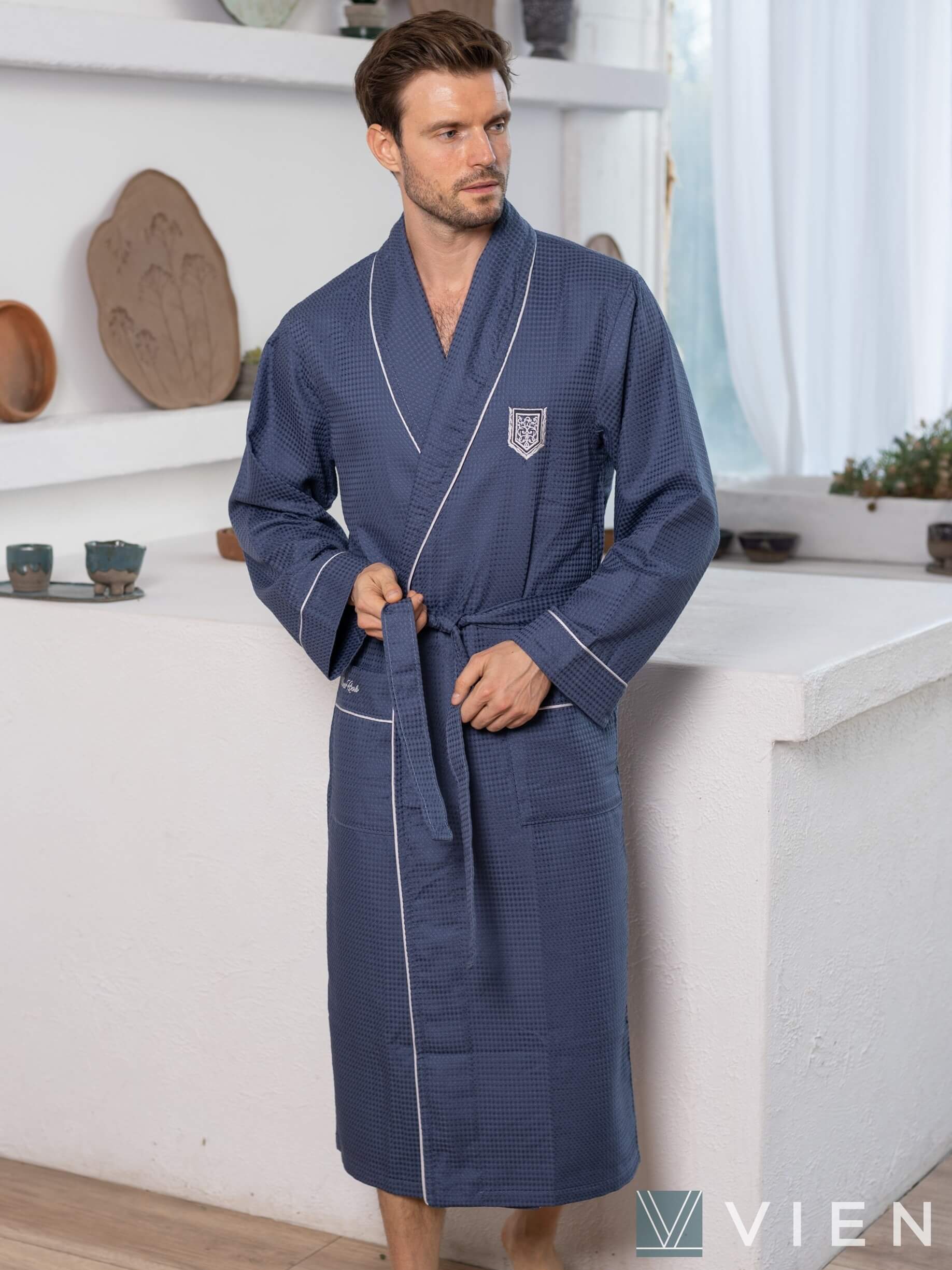 Мужской вафельный бамбуковый халат Monte Carlo (Джинс)